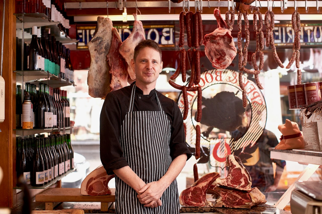 Manager Bjorn Boonen (°1977) has lived in Brussels for twenty years, but he spent his youth in the Limburg countryside. As a child, he went along when his parents went to buy beef in Ciney: the love for high-quality meat was therefore instilled at an early age, and has never left him since. Not satisfied with the ubiquitous 'Belgian white-blue' beef breed and with the equally lean and flat-tasting pork, he began to experiment with other breeds and charcuterie preparations during his many years as a chef. Bjorn became an ardent defender of good and honest meat: from that inspiration, Spek & Boonen was born.