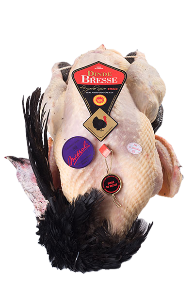 Souche bressane pure à pattes noires, issue de lignées rustiques autochtones. Élevage extensif 180 jours minimum sur parcours herbeux.